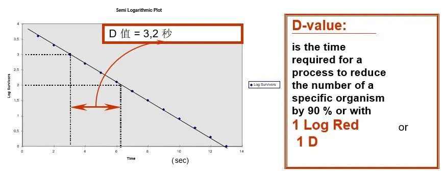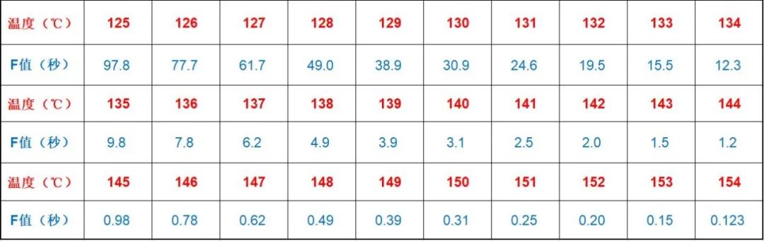 2.3 D 值 (Decimal reduction time) D 值的定义: 特定温度下,使微生物减少至原始菌数 1/10 时所需的保温时间。 D65= 1min 的含义是 65 ℃ 时,灭菌时间每延长一分钟,微生物数量减少为1D (减少90%)。延长两分钟微生物数量减少为 2D (减少 99%): 1D= 90% 减少= 1 个指数下降 2D= 99% 减少= 2 个指数下降 3D= 99.9% 减少= 3 个指数下降 4D= 99.99% 减少= 4 个指数下降 2.3 Z 值 Z 值的定义:Z 值是指使某一种微生物的 D 值下降一个对数单位时,灭菌温度应升高的度数, 其单位为 ℃ 。 Z 值越大,微生物对温度变化的敏感性越弱;Z 值的作用是转换计算不同温度下的杀灭微生物的效果; 如果某种微生物 Z 值为 10℃ ,并且 D65 = 50 秒, 这就意味着: D75 = 5 秒 也就是可以通俗的理解为:提高 1Z 值的杀菌温度的同时,将杀菌时间减少至原来的 1/10,对这种微生物的杀菌效果是没有变化的;反过来说,降低 1Z 值的杀菌温度,那就要将杀菌时间增加 10 倍才能得到等效的杀菌效果。 2.4 F 值 在基准温度中杀死一定数量对象微生物所需要热处理的时间(min),即该微生物的杀菌值。 F0 值的定义:在湿热灭菌中,参比温度规定为 121℃,以嗜热脂肪芽孢杆菌为生物指示剂的Z值为 10℃,即 F0 值为一定杀菌温度 T 下 Z 值为 10℃ 时所产生的灭菌效率与 121℃、Z 值为 10℃ 所产生的灭菌效率相同时所相当的时间Min。也就是说 F0 值是将各种灭菌温度的灭菌效果转换为 121℃ 灭菌的等效值。 F0 值的计算公式 对于热压灭菌法,参比温度定为 121℃,参比微生物选择嗜热脂肪芽胞杆菌,其 Z 值为 10℃,此时得到的 F 值称为 F0 值。用公式表示为: “T” 是产品灭菌的温度 “Δt” 温度 T 下测试的间隔时间